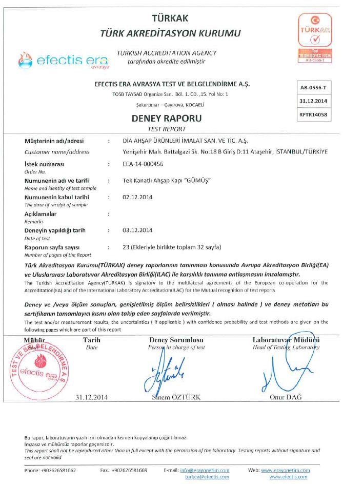 30 DK YANGINA DAYANIM KAPI SERTİFİKASI