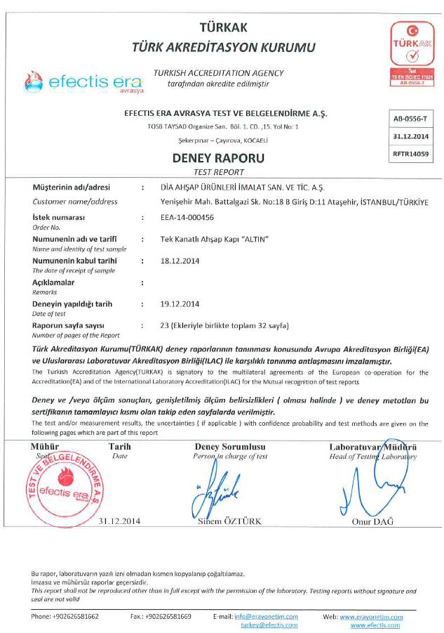 60 DK YANGINA DAYANIM KAPI SERTİFİKASI